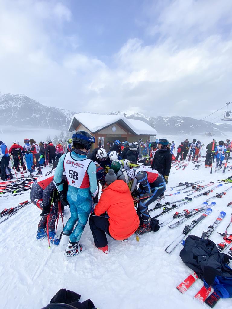 After a third training day of GS, VST was ready to tackle the race on Old Timer’s gently rolling slope. During the four-day series, they joined over 180 FIS athletes in charging down Old Timer. The run’s gently rolling terrain gave way to fast, open GS courses and high-tempo SL courses, both of which pushed everyone’s legs to the max. In addition, even the warm trend from the West Coast was prevalent; temperatures remained at a comforting -5C to 0C, which was a stark but exciting contrast from last year’s bone-chilling -30C. Unfortunately, this also meant that the snow was soft and rutted easily, but with everyone’s years of training on Grouse, Seymour and Cypress, and the fact that Panorama’s signature grippy surface remained despite the melt, it was not an issue at all. The team laid down several solid runs, with many athletes showing off the solid improvements they’d made during the training camps and scoring personal bests by huge margins.